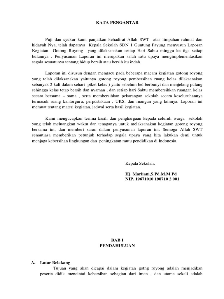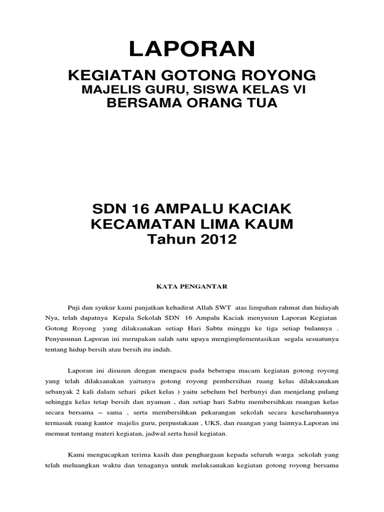 Contoh Laporan Hasil Kegiatan Gotong Royong Siswa Sd Pdf